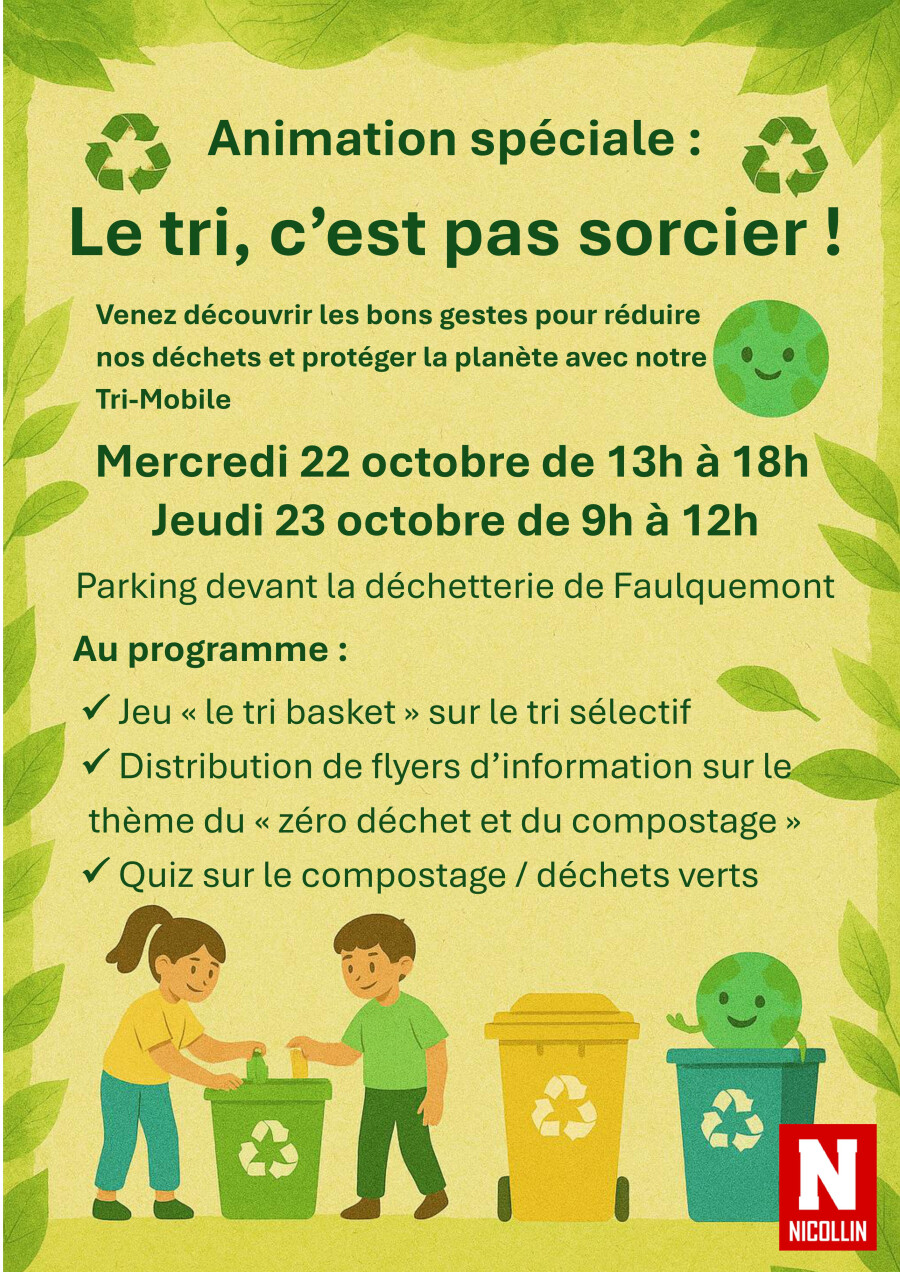Le Maire rappelle qu’il est formellement interdit de décharger des gravats, végétaux et autres détritus sur les chemins et terrains communaux ou dans la forêt. Il rappelle aux habitants de la Commune, qu’ils ont accès à la déchetterie de FAULQUEMONT.