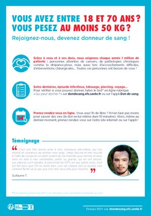 * Depuis le 1er septembre 2025, il n’est plus nécessaire d’attendre 4 mois pour aller donner son sang ou son plasma après un tatouage, 2 mois suffisent.