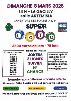 dimanche 8 mars à 18h, salle parquet du gymnase, La Gacilly. Prévoyez 1h sur place.