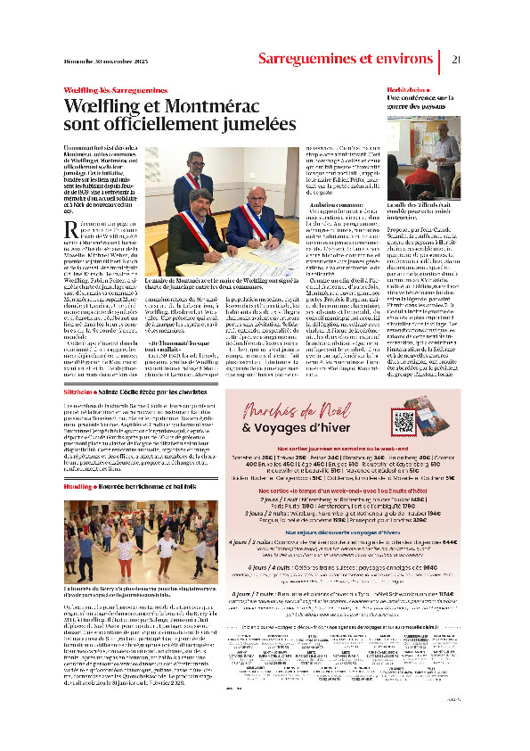 Samedi 15 novembre 2025, nous avons eu l’immense honneur de signer la charte de jumelage entre Woelfling-Lès-Sarreguemines et la Commune de Montmérac, en présence du sénateur Michaël Weber, Sénateur de la Moselle , de Fabien Peifer, Maire de la commune de Woelfling, son 1er adjoint Gilbert Rauch et de la conseillère municipale Céline Kirsch.