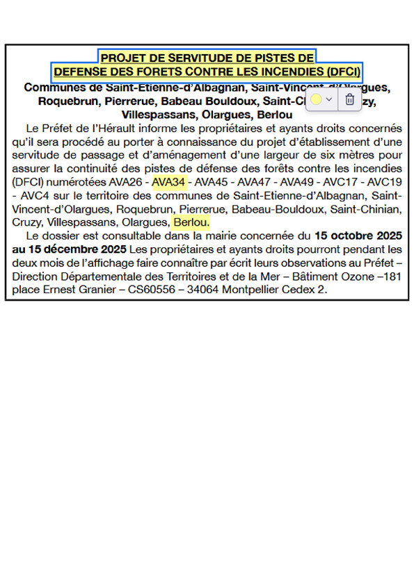 Pour tout renseignement complémentaire, vous pouvez contacter la mairie au 04.67.97.09.06 ou par mail à