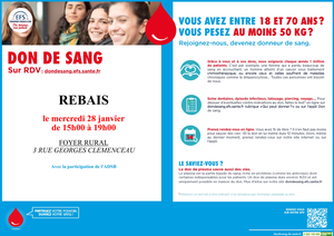 Cliquez ici pour vous inscrire à la collecte de sang du mercredi 28 janvier à REBAIS