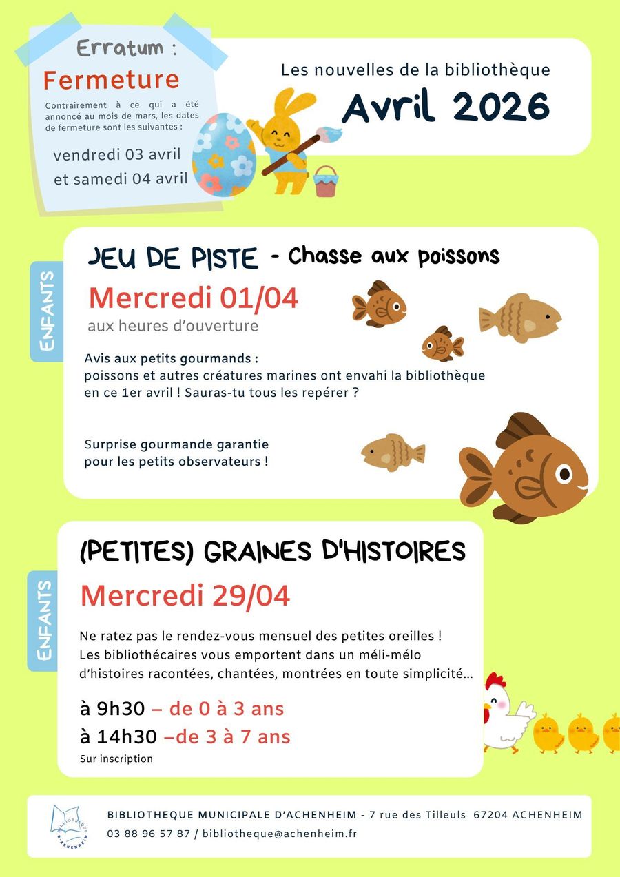 Préinscription en mairie à partir du 1er mars ou par mail : accueil.mairie@achenheim.fr.