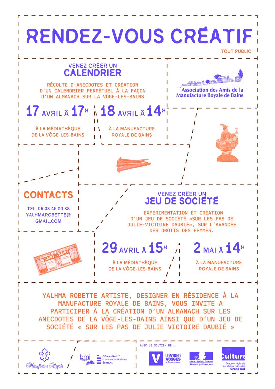 🤗 Dans le cadre de sa résidence à La Manufacture Royale de Bains, la designer Yalhma Robette vous invite à prendre part à deux projets créatifs ouverts à tous