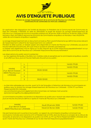 Une enquête publique relative à la révision du zonage d'assainissement sur notre commune démarre à partir du