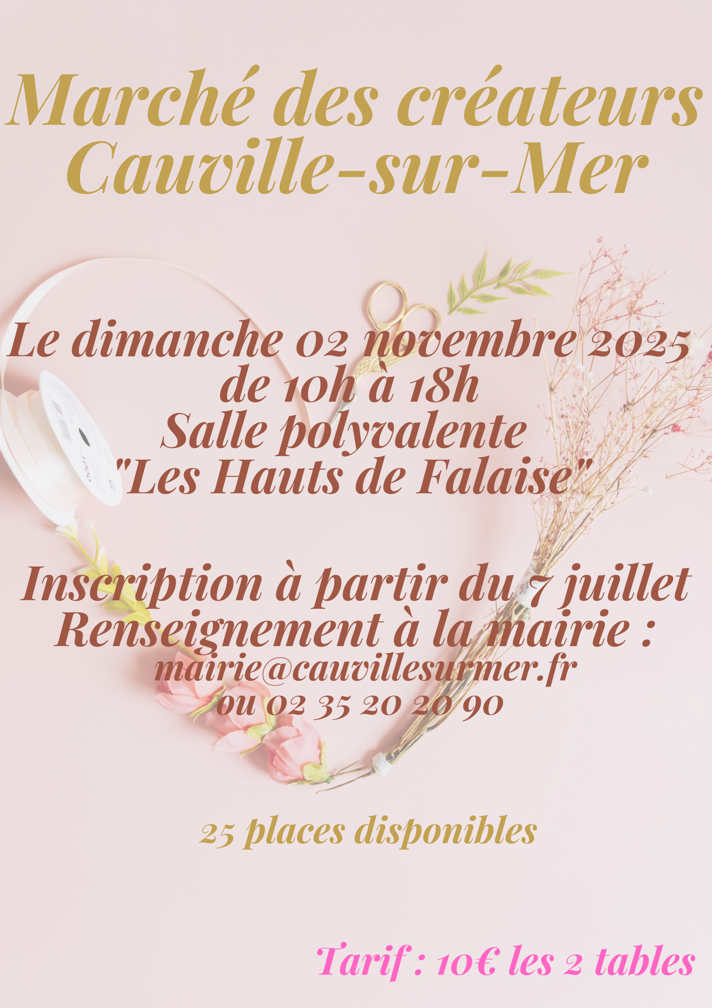 Rendez-vous le dimanche 2 novembre 2025, de 10h à 18h, à la salle polyvalente “Les Hauts de Falaise” de Cauville-sur-Mer pour découvrir le talent de 25 exposants passionnés !