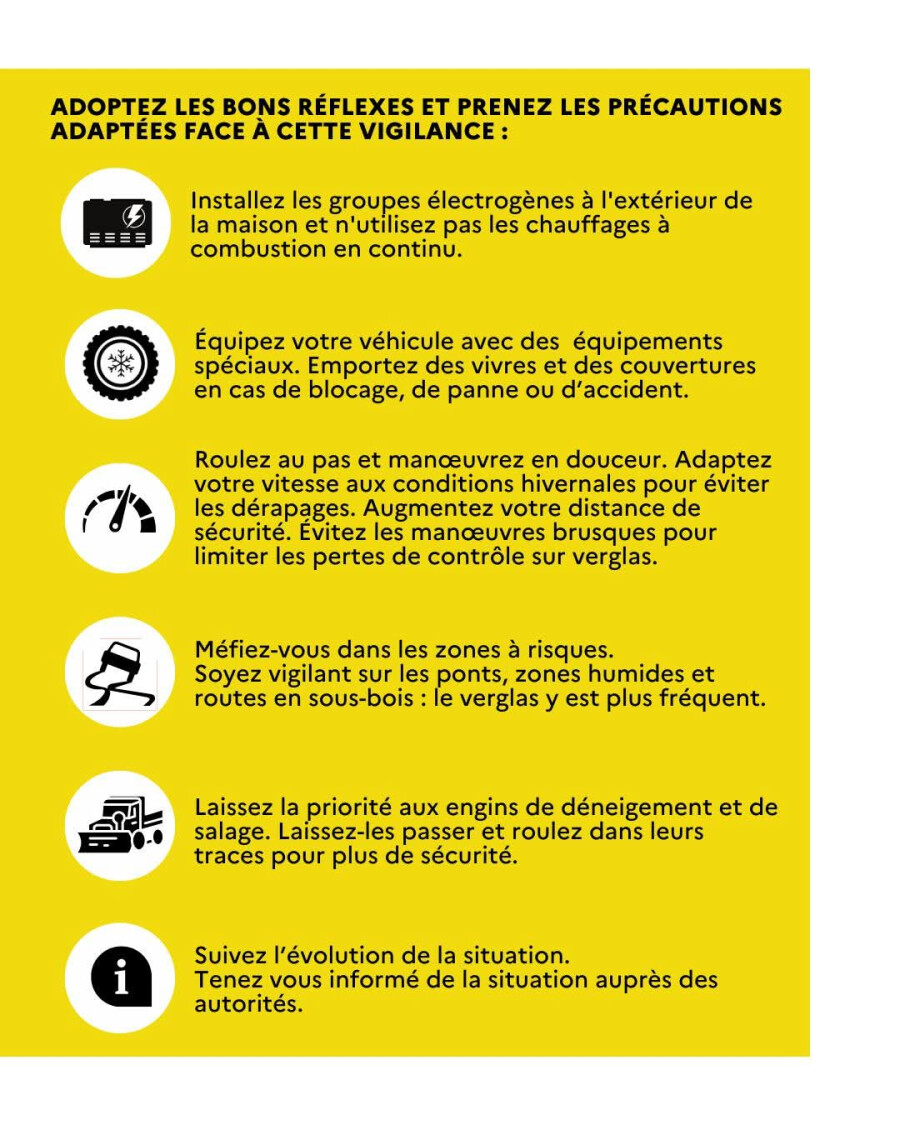 🔥 Installer les groupes électrogènes à l'extérieur de la maison et ne pas utiliser pas les chauffages à combustion en continu.
