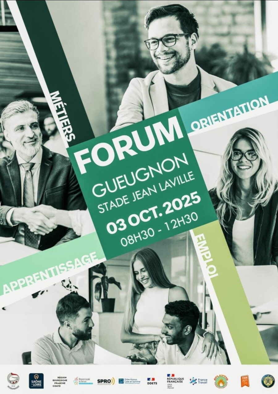 Le vendredi 3 octobre 2025 de 8h30 à 12h30, rendez-vous au Salon Bourgogne – Stade Jean Laville à Gueugnon pour la 10ème édition du Forum de l’Orientation, de l’Emploi, des Métiers et de l’Apprentissage.