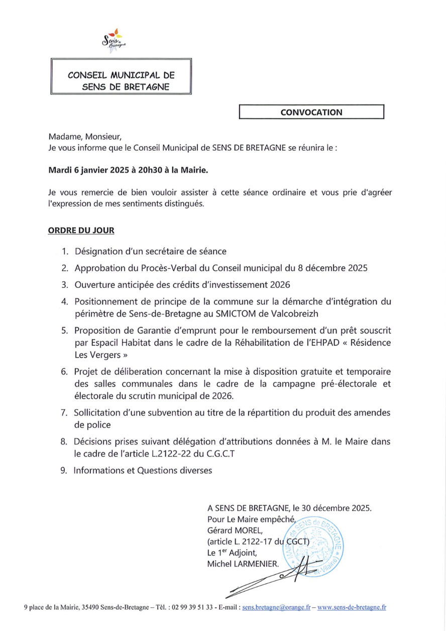 Le Maire de Sens-de-Bretagne et l’ensemble du Conseil municipal ont le plaisir de convier les Sénonaises et les Sénonais à la cérémonie des vœux.