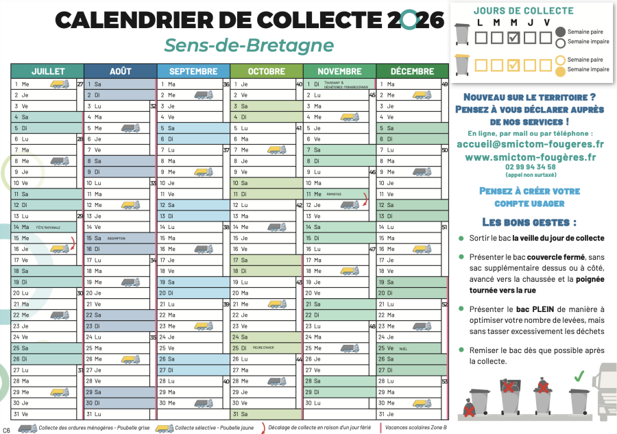 Le calendrier de collecte des déchets pour l’année 2026 est désormais accessible. Pensez à le consulter pour connaître les jours et modalités de passage sur notre commune.
