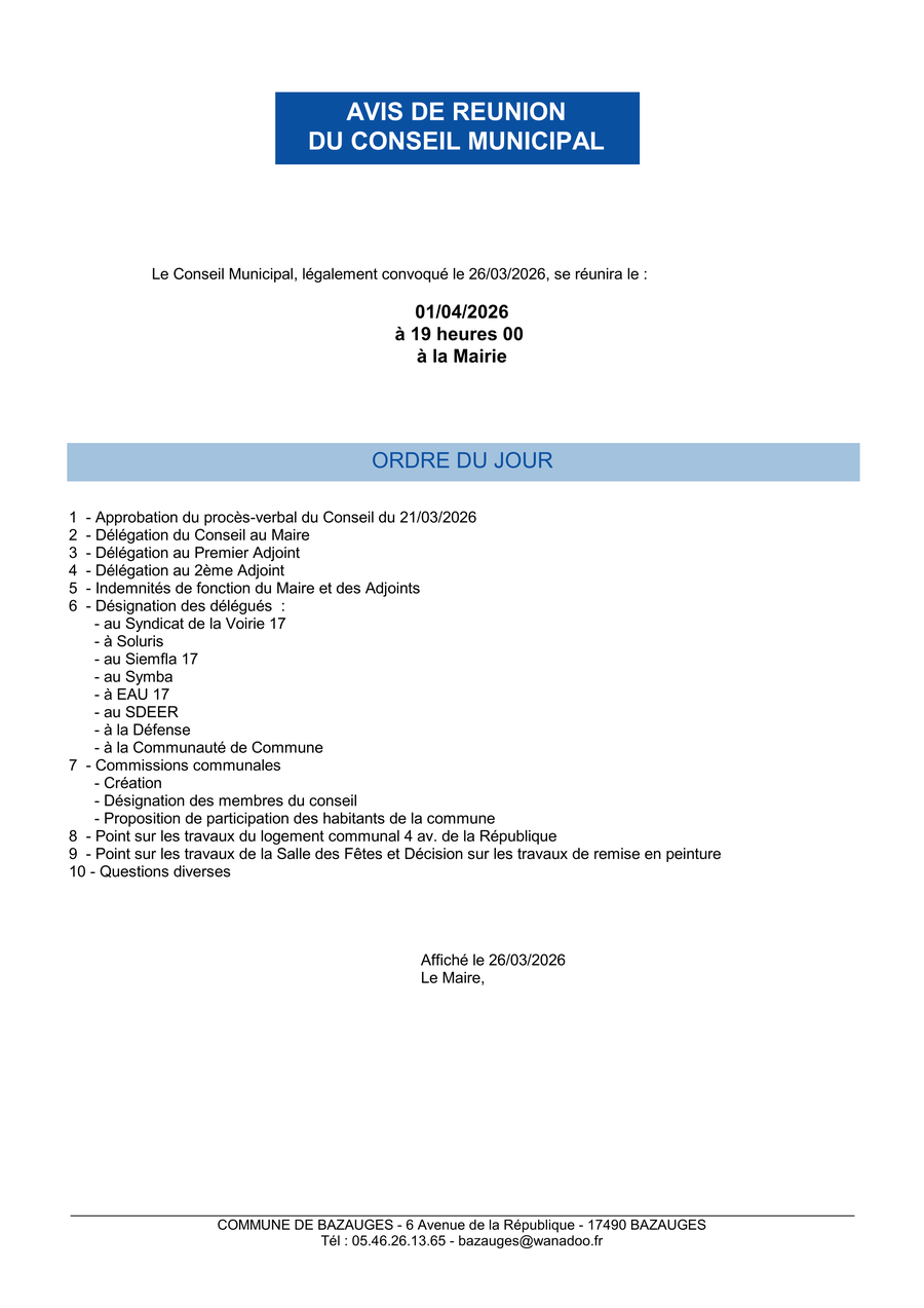 📬 Adresse de la Mairie :