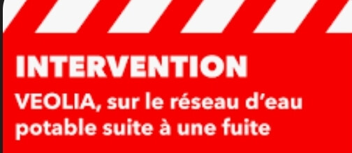 📢 Coupure d'eau et intervention en urgence de Véolia en cours Rue de Malvache et les rues à proximité suite une fuite d'eau.