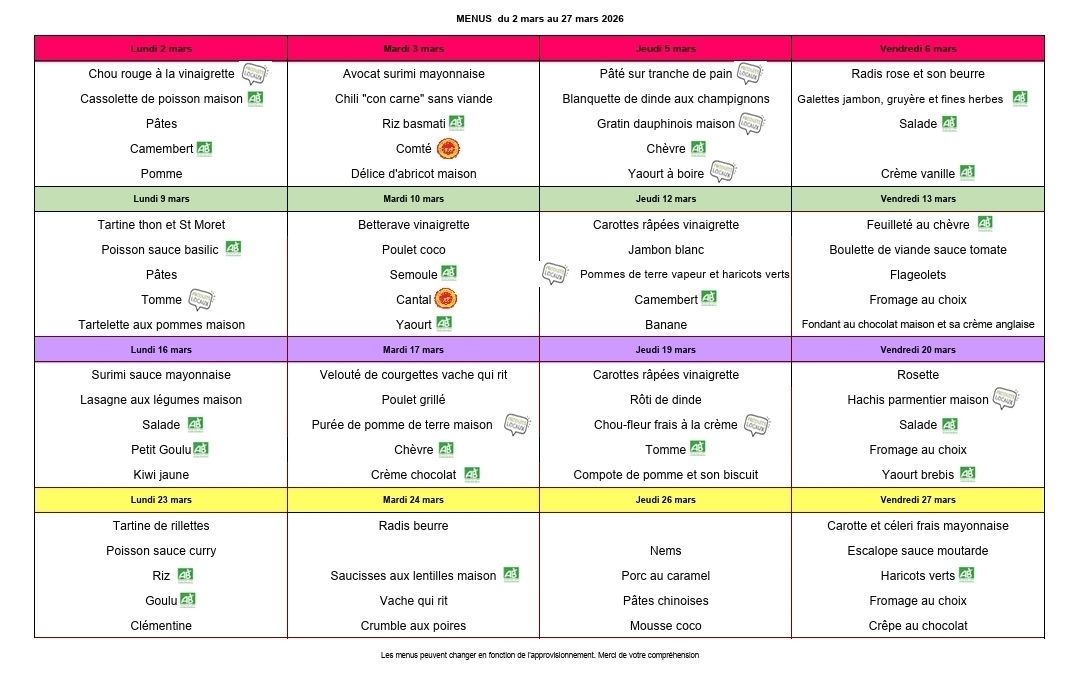 Après-midi : lundi 14h à 17h - jeudi 14h à 18h - vendredi 14h à 16h30