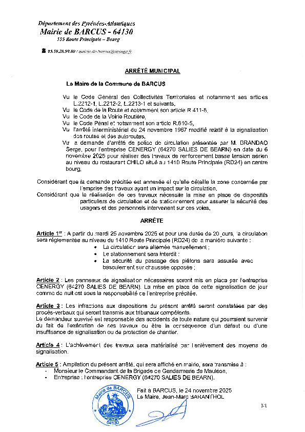 LA CIRCULATION DE VEHICULES SERA REGLEMENTEE SUR LA ROUTE PRINCIPALE