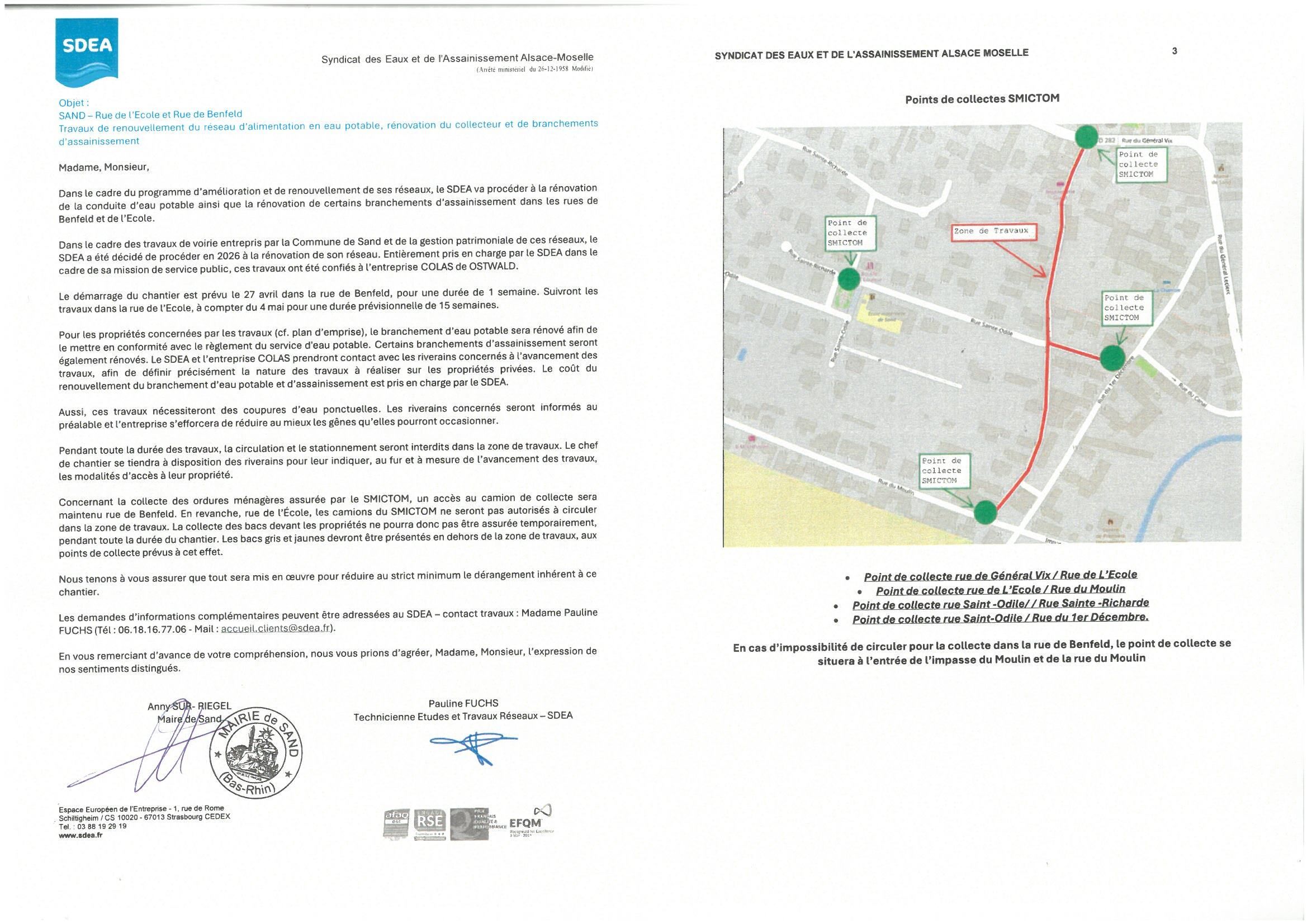 POINTS DE COLLECTE DES ORDURES MĂNAGĂRES SUITE AUX TRAVAUX SDEA DANS LES RUES :