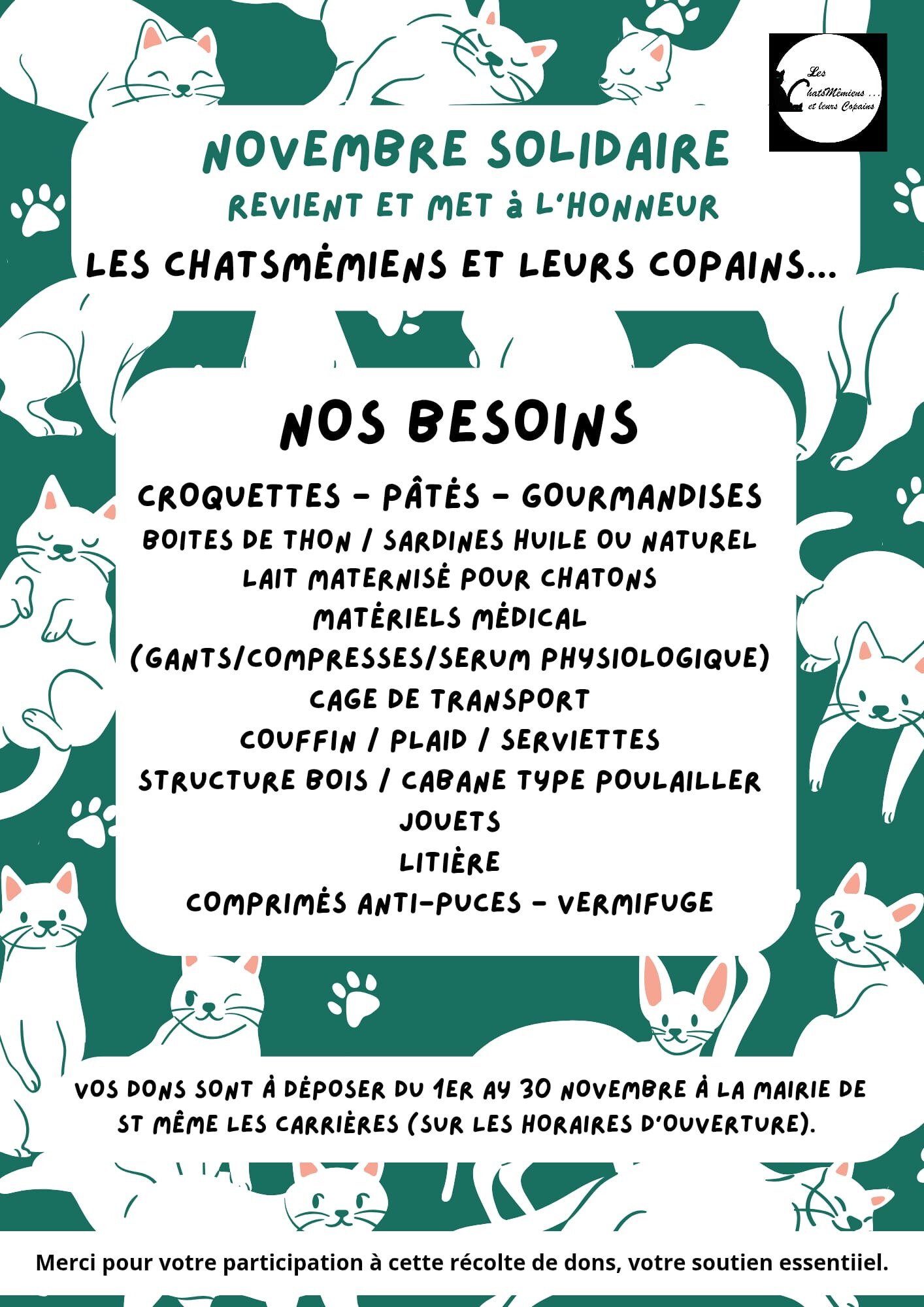 La prochaine assemblée générale du club de pétanque aura lieu samedi 6 décembre à 15 heure 30 au club house de St Même.