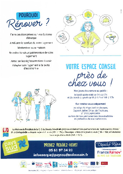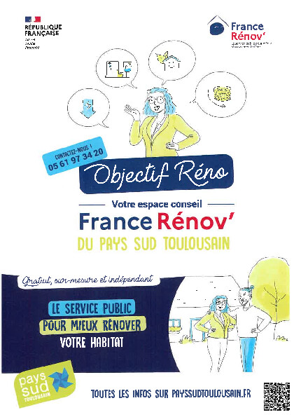 Pour plus d’informations, ObjectifRéno, l’Espace Conseil France Rénov du Pays Sud Toulousain se