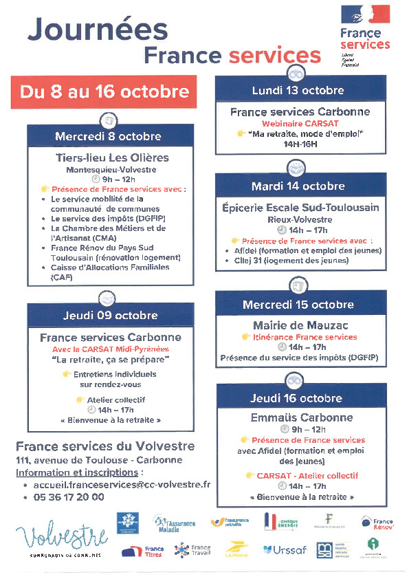 France services et ses partenaires vous donnent rendez-vous pour une semaine d’information, de conseils et d’accompagnement sur de nombreux thèmes du quotidien : retraite, mobilité, rénovation de l’habitat, accompagnement social et bien plus encore.