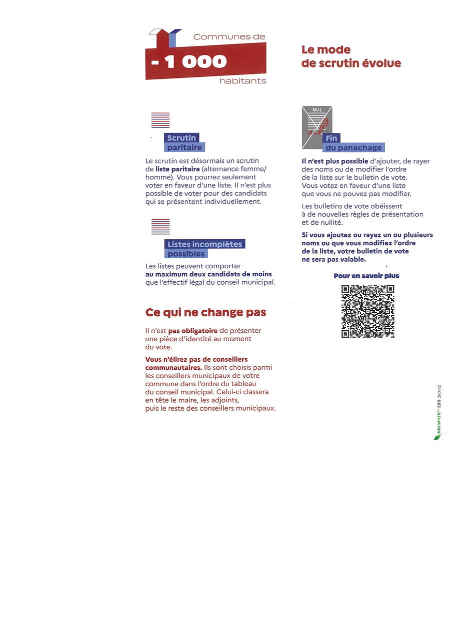 À partir des élections municipales de 2026, le mode de scrutin évolue pour les communes de moins de 1000 habitants.