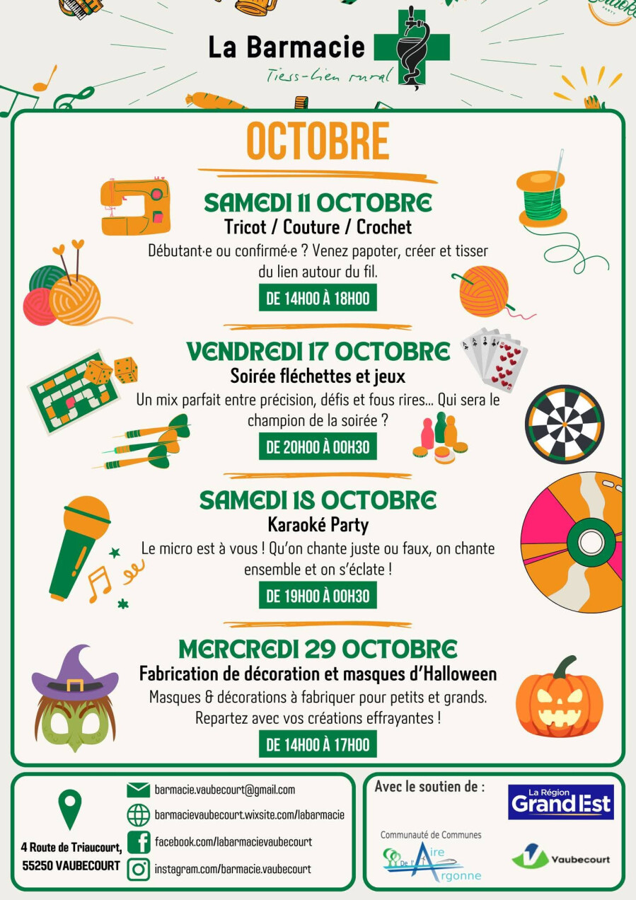 ✨ Voici le programme du mois d’octobre à La Barmacie ✨