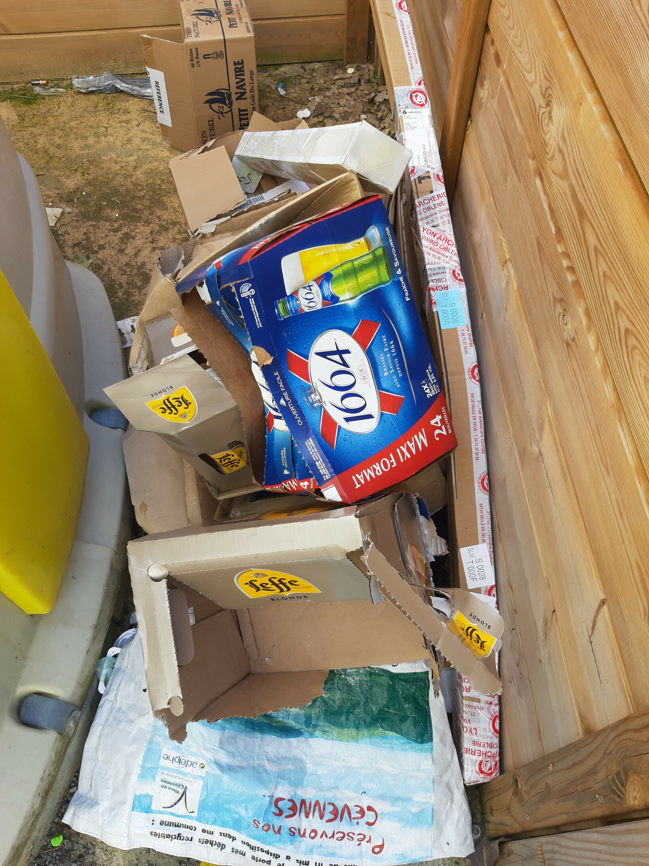 Il vient d'être constaté que des cartons de colis et autres déchets non soumis au tri, se trouvent à côté de la colonne d'emballages.