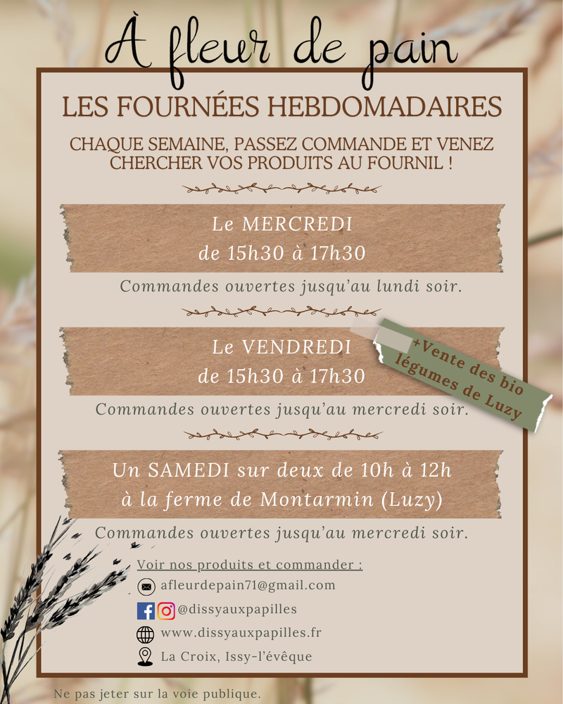 Les légumes bio et les fournées pour Luzy seront de retour en février, nous vous tiendrons informés d'ici là.