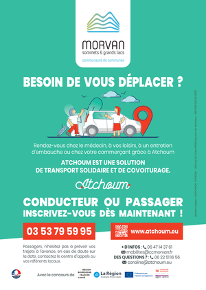 👉 Conducteurs ou passagers, inscrivez-vous dès maintenant au 03 53 79 59 95 ou sur www.atchoum.eu et participez à une mobilité solidaire et accessible à tous.