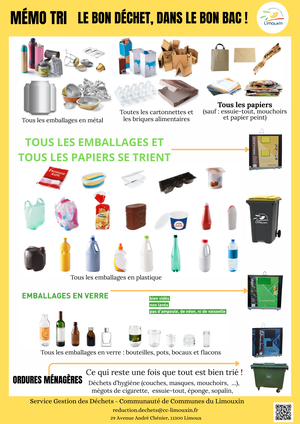 Ceci comprend le tri du verre, des emballages, des déchets organiques.