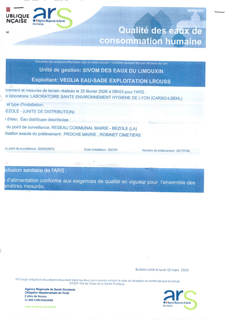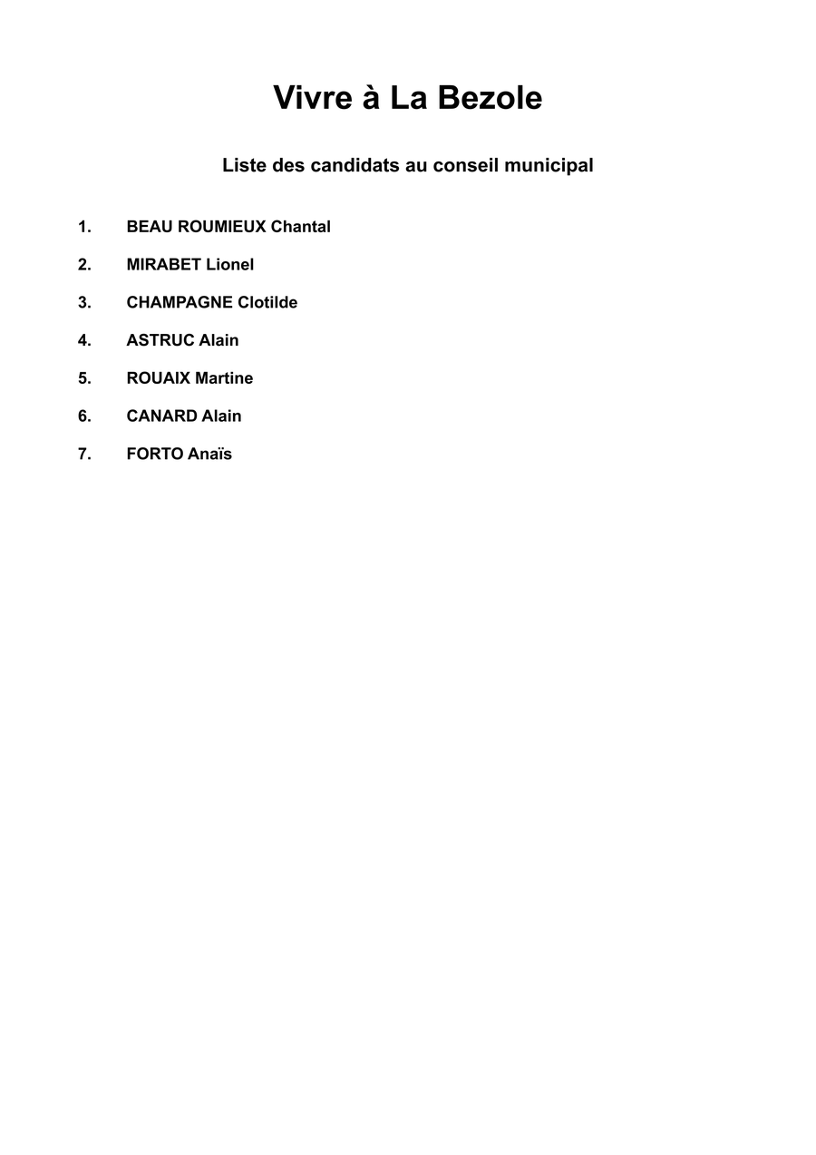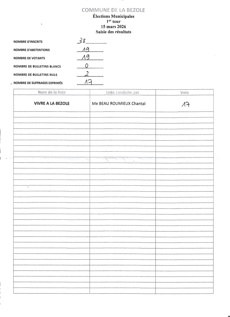 Veuillez trouver ci- joint le résultat des élections municipales de La Bezole 2026