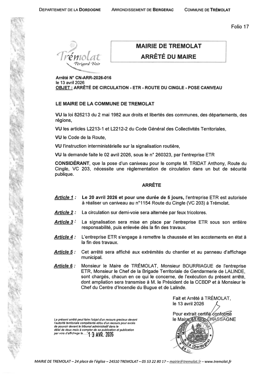 Suite à l installation du Conseil Municipal qui s'est tenue vendredi 20 mars 2026, nous vous informons :