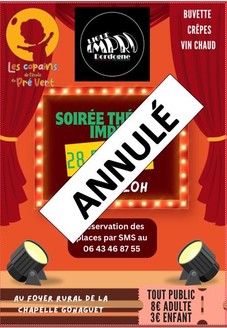 L’association des Copains de l’école du Pré Vert vous invite à une soirée théâtre d’improvisation / cabaret, en compagnie de la Ligue d’impro de Dordogne.