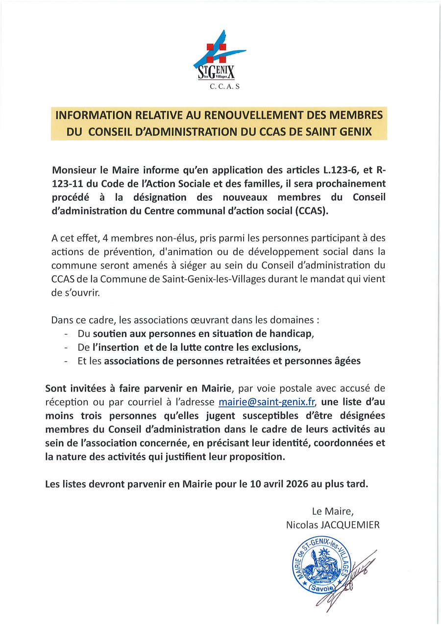 - Élection des représentants du Conseil municipal au conseil d’administration du CCAS