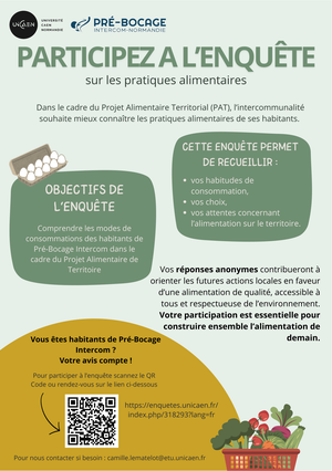 Dans le cadre du Programme National pour l’Alimentation (PNA), Pré-Bocage Intercom a été déclaré lauréat à un appel à projets lancé à l’initiative du ministère en charge de l’alimentation pour définir son Projet Alimentaire Territorial (PAT).