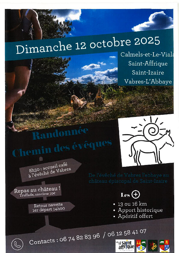 Cette randonnée, mêlant histoire, patrimoine et paysages d’exception, propose de cheminer sur le parcours séculaire qu'empruntaient jadis les évêques de Vabres pour se rendre au château de Saint Izaire. Les communes de Calmels et le Viala, Saint Affrique, Saint- Izaire et Vabres l’abbaye, avec l’aide des associations de randonneurs, ont réaménagé ce chemin pour qu’il devienne un chemin de randonnée permanent, conjuguant l’histoire locale, le patrimoine. Elle vous propose un parcours traversant différents territoires et des paysages superbes.