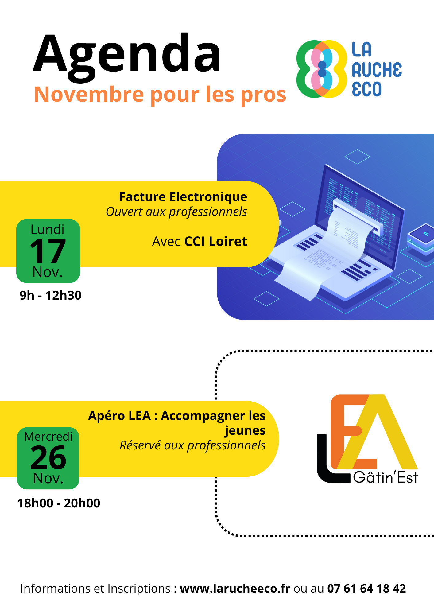 🗓️ Le lundi 17 novembre, de 9h à 12h30 : Atelier facture électronique avec la CCI