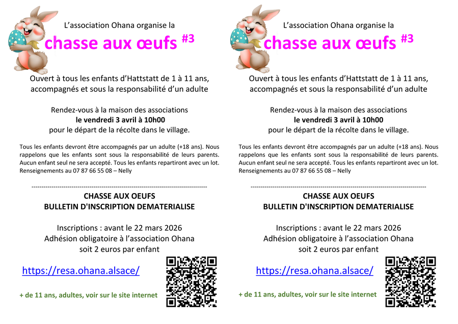 l'Association OHANA organise sa 3ème Chasse aux œufs