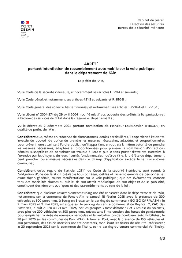 La préfecture de l’Ain considère qu'un ou plusieurs rassemblements festifs à caractère musical de type teknival, rave-party, free-party, pouvant regrouper plusieurs milliers de participants, sont susceptibles de se dérouler