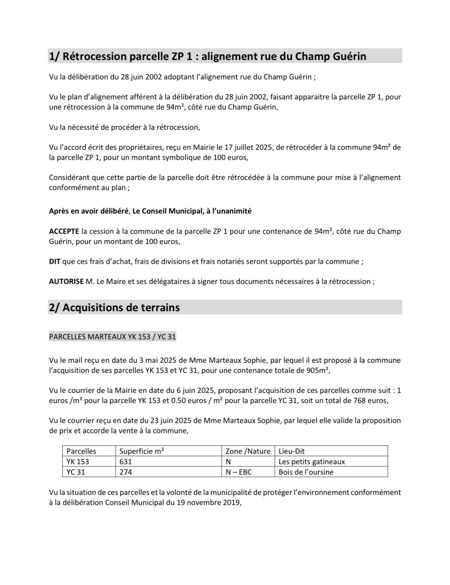 Vous trouverez ci-dessous l'ordre du jour de la prochaine réunion du conseil municipal 👇