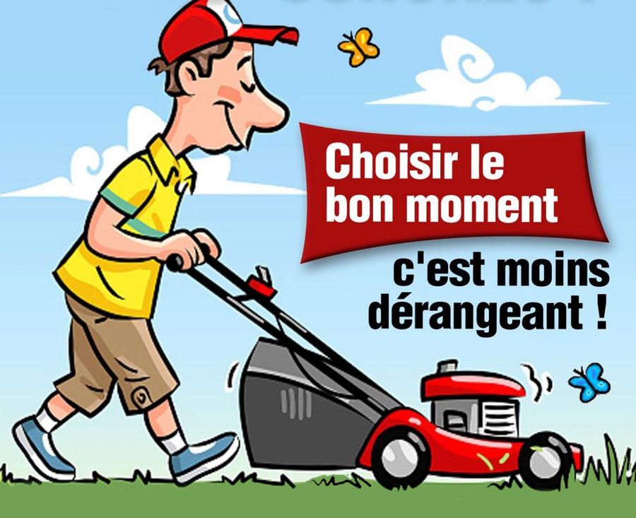 ➡️ Les travaux de bricolage et de jardinage, à l'aide d'outils ou d'appareils susceptibles de causer une gêne pour le voisinage en raison de leur intensité sonore (tondeuses à gazon, tronçonneuses, perceuses, scies mécaniques,...), doivent être effectués uniquement :