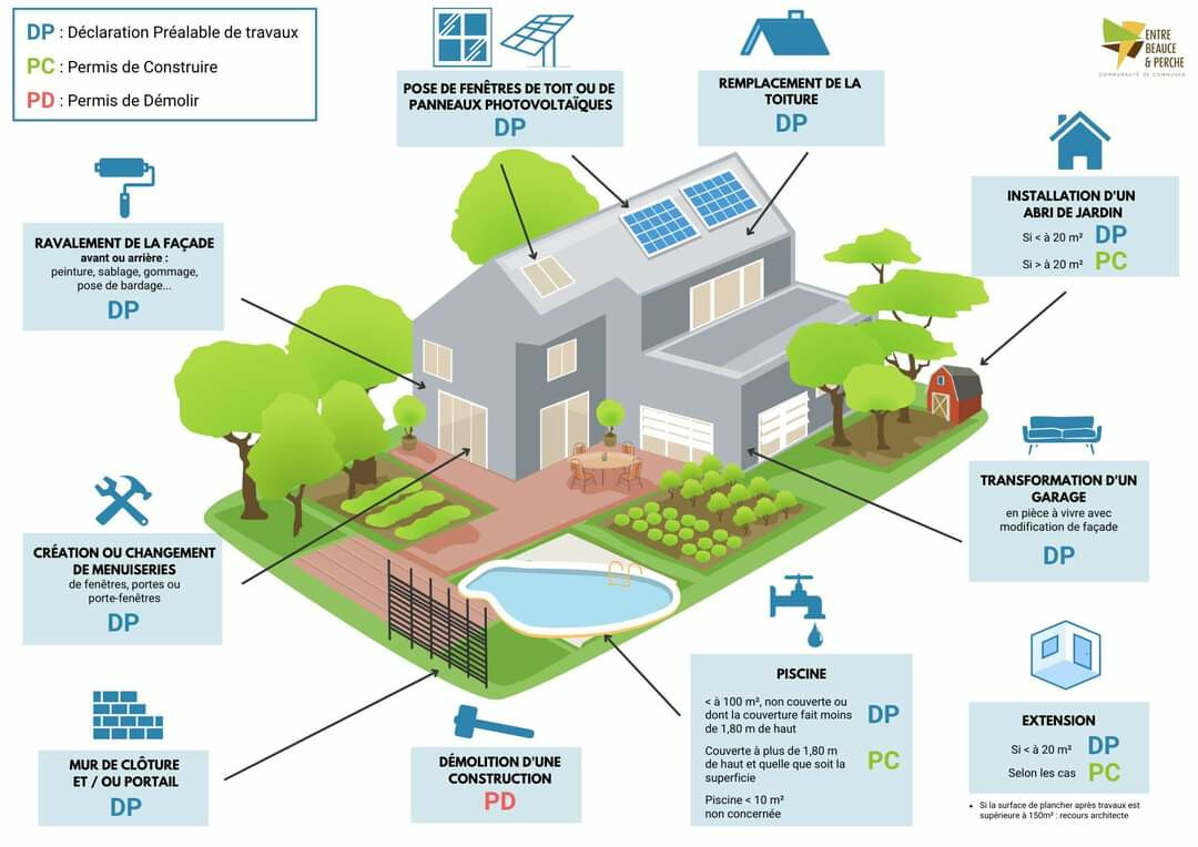 📐 Vous souhaitez faire des travaux de construction, aménagement ou démolition ? Dans certains cas, vous devez les déclarer et faire une demande de :