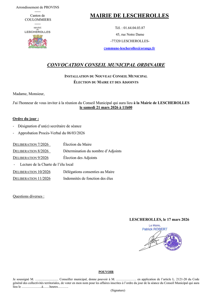Le conseil municipal d'installation des élus se tiendra