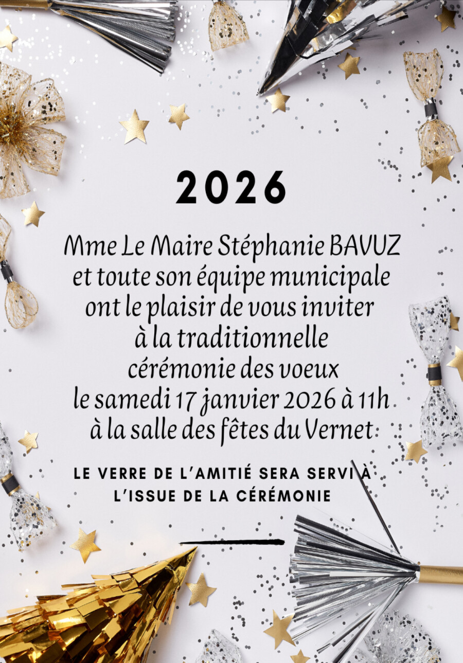 Mme Le Maire Stéphanie BAVUZ et toute son équipe municipale ont le plaisir de vous inviter à la traditionnelle cérémonie des vœux