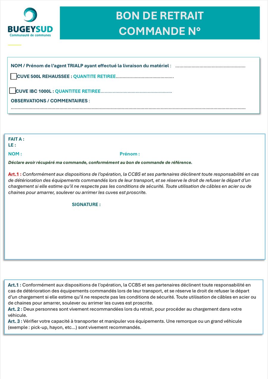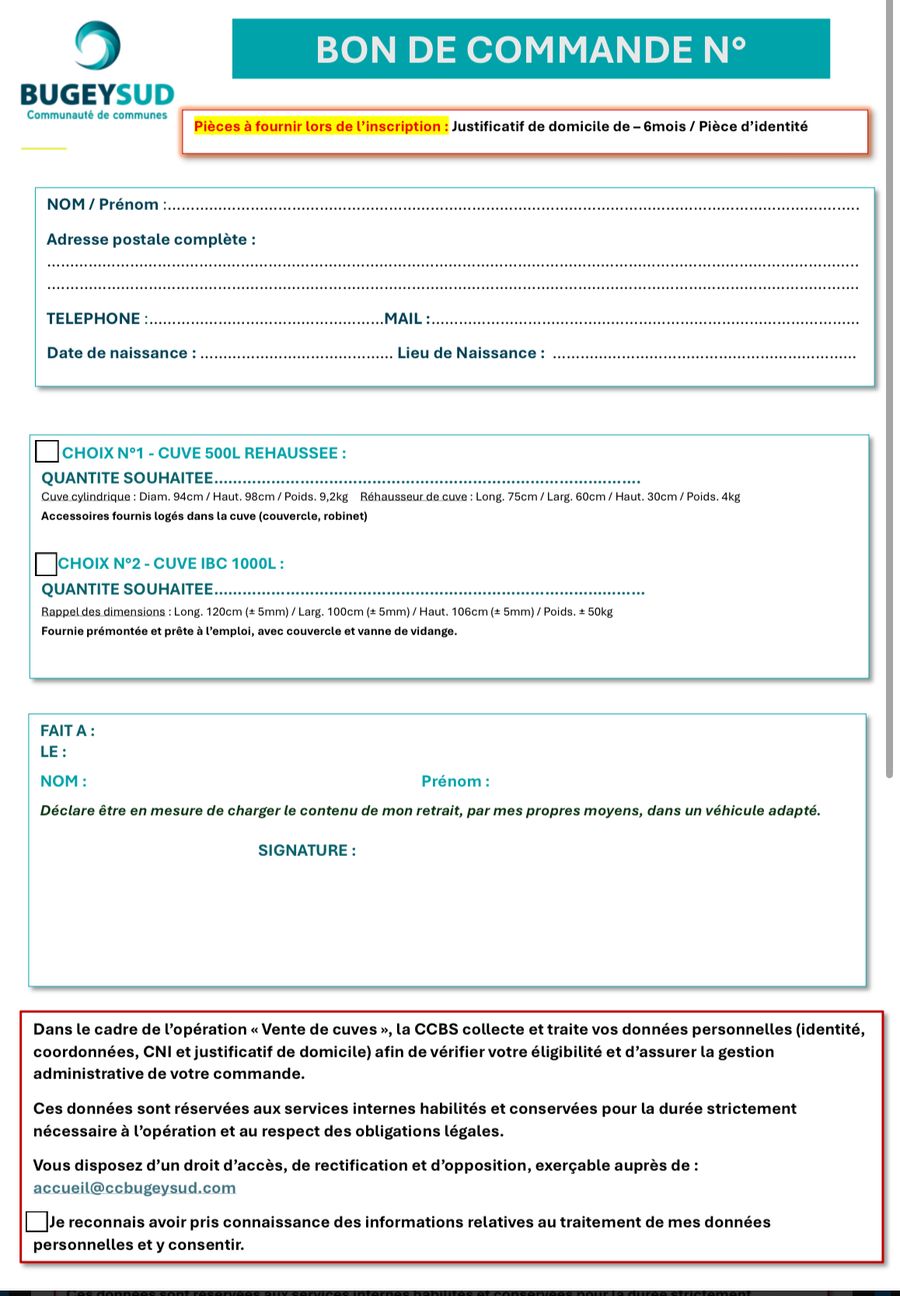 Télécharger sur le site internet de la communauté de communes BUGEY SUD le bon de commande et le remplir