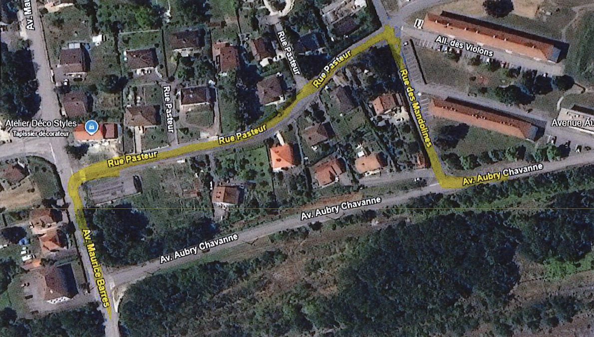 Pour les véhicules venant de l’avenue Aubry Chavanne : par la rue des Mandolines et la rue Pasteur.