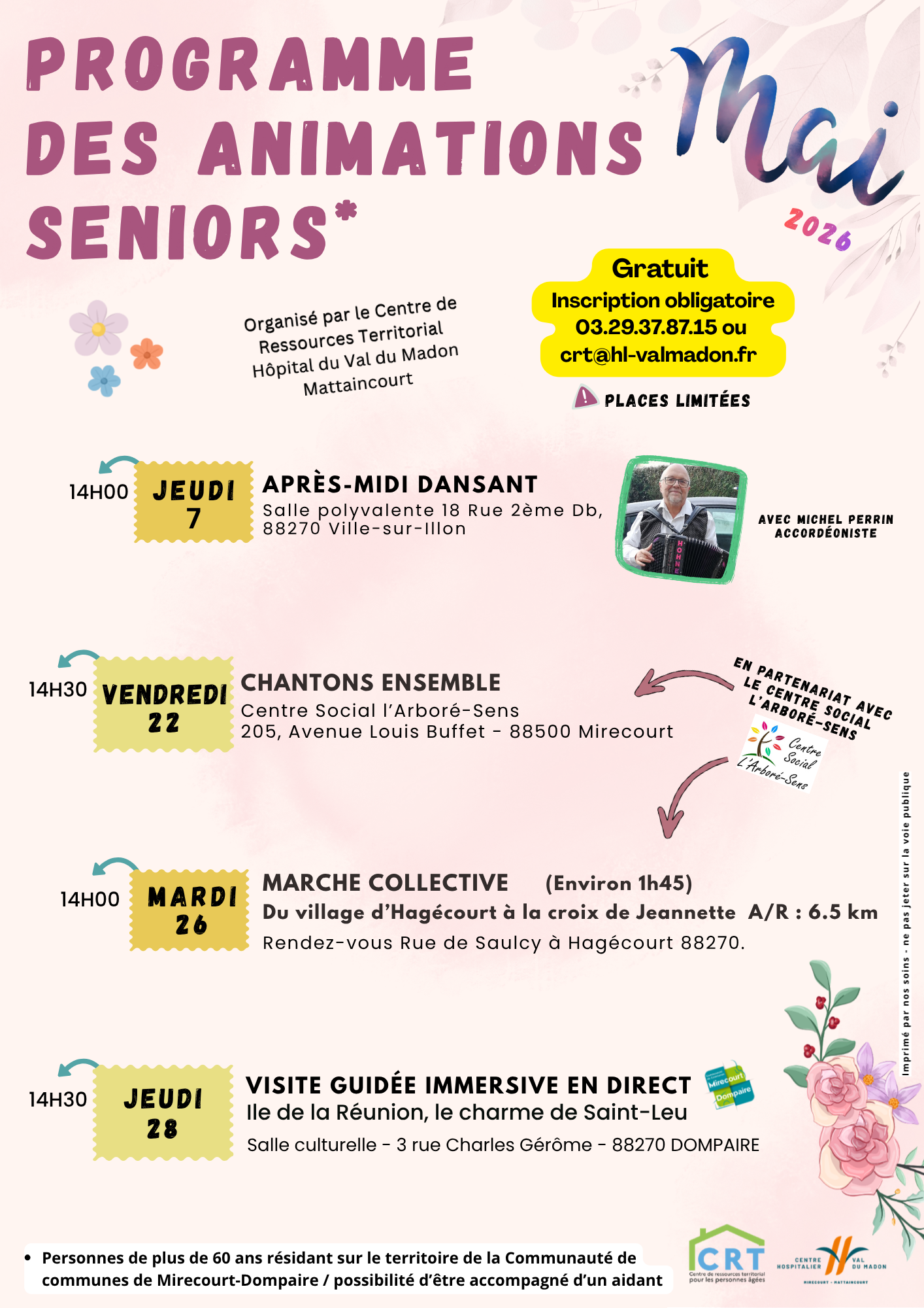👥 Ouvert aux seniors de plus de 60 ans résidant sur le territoire de la Communauté de communes de Mirecourt / Dompaire.