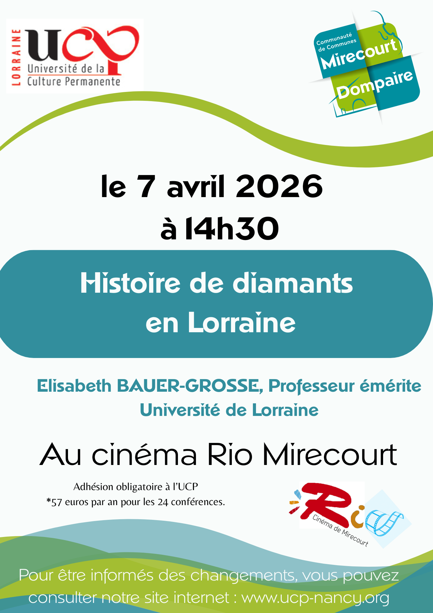 LâadhĂ©sion Ă lâUCP est obligatoire (57âŹ/an pour 24 confĂ©rences). Pour rester informĂ©s des Ă©ventuels changements, consultez notre site www.ucp-nancy.org.