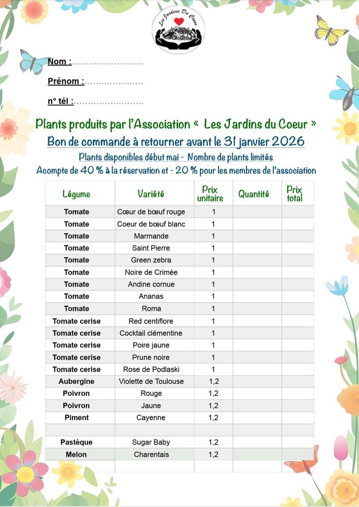 L'association les jardins du cœur qui gère le jardin pédagogique de l'école des Martys, organise une précommande de plants potagers qui seront disponibles courant mai.