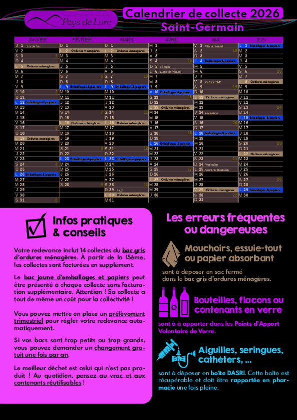 📅 🚮Les calendriers de collecte 2026 sont prêts ! Attention, il y a plusieurs point à noter cette année (tous indiqués sur les calendriers) :