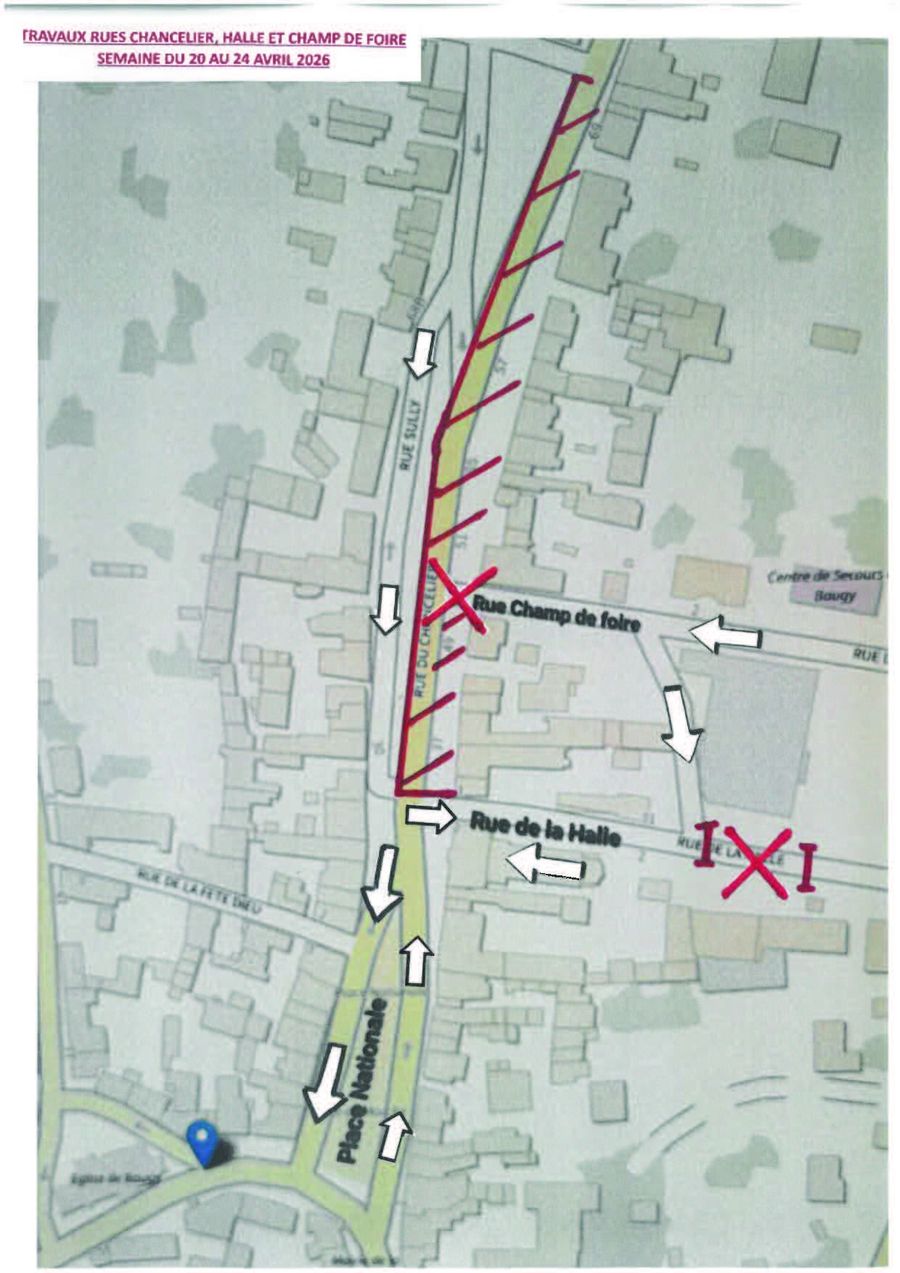Des travaux de réfection des canalisations vont être entrepris à compter du Lundi 20 avril 2026, pour une durée d’environ un mois, dans la Rue du Chancelier, et se fera en deux étapes :