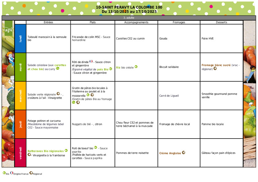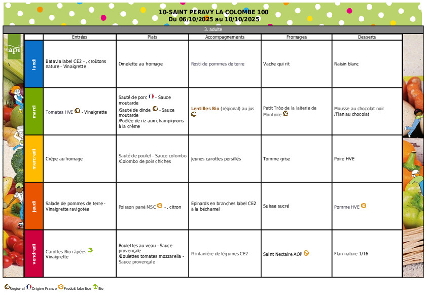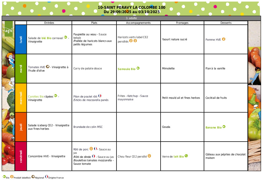 Vous trouverez ci-dessous, les menus pour la période du 29 septembre 2025 au 17 octobre 2025